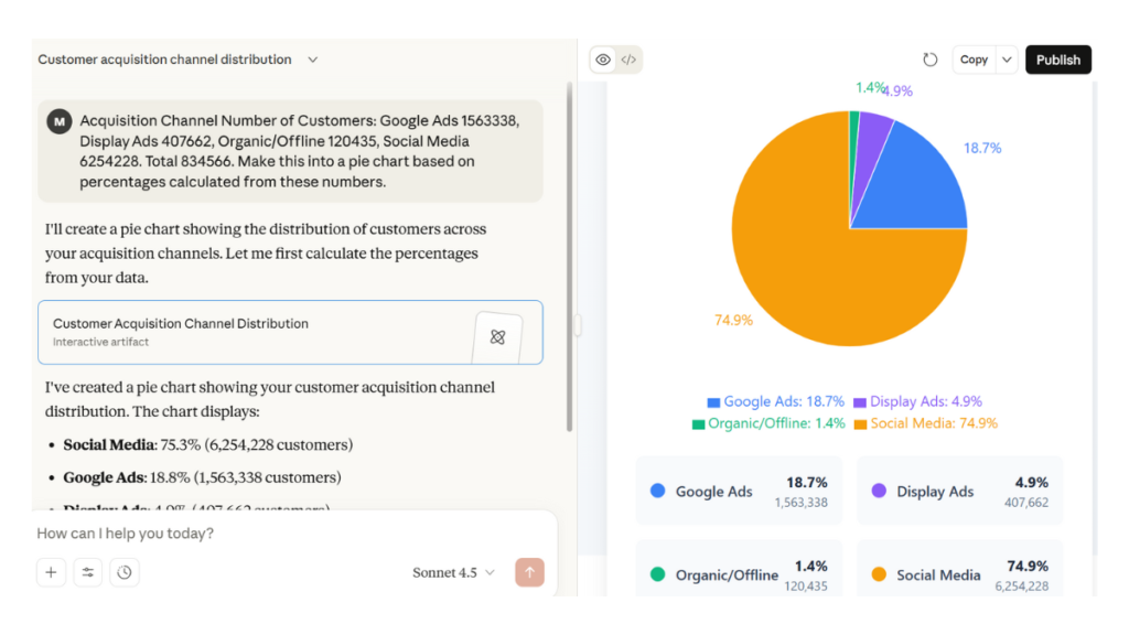 To test it, I simply copied some data as plain text (not even a proper table) and asked Claude to make a pie chart; that’s it. No formatting, no extra steps, and it generated the chart correctly.